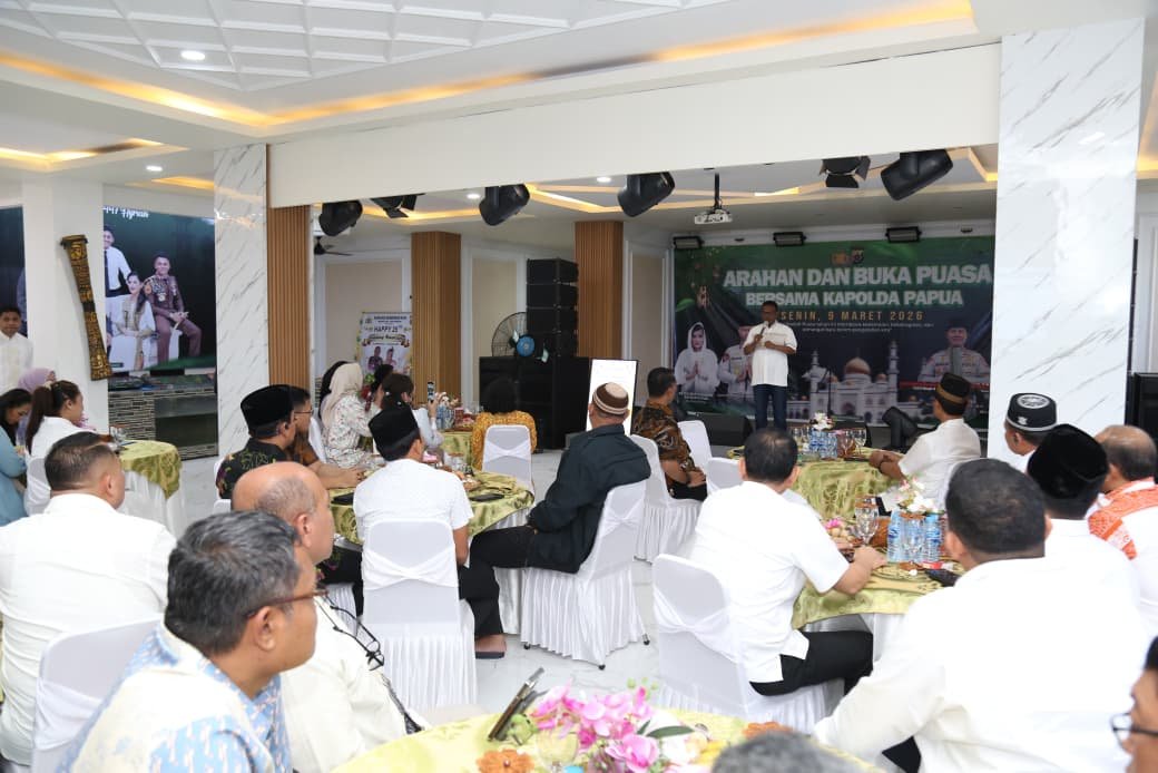 Papua – Kapolda Papua, Irjen Pol. Patrige R. Renwarin, S.I.K., M.Si., menggelar kegiatan arahan khusus yang dirangkaikan dengan buka puasa bersama para Pejabat Utama (PJU) dan perwira jajaran Polda Papua di Kediaman Kapolda Papua, Jayapura, Senin (09/03/2026).