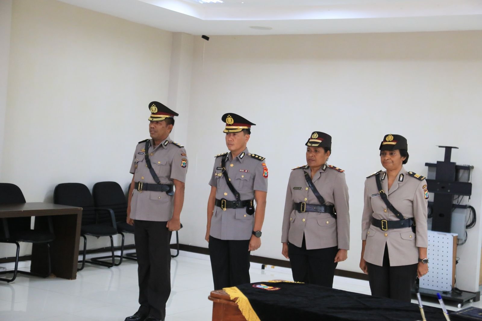Turut Hadir Irwasda dan PJU Polda Papua Barat. Adapun Dirtahti Polda Papua Barat yang yaitu Kompol Agustina Sineri, S.Pd. yang sebelumnya menjabat sebagai Wakapolresta Manokwari.Selain itu juga dilaksanakan serah terima jabatan Kasetum Polda Papua Barat dari Kompol Alexander Mody Hehalatu, S.H., M.M., M.H. kepada AKP Nengsi Marline Waromy, serta serah terima jabatan Kayanma Polda Papua Barat dari Kompol I Gusti Putu Ngurah Wiranadi, S.Sos. kepada AKBP Dodik Tri Hendro Siswoyo, S.H., S.I.K., M.I.K.