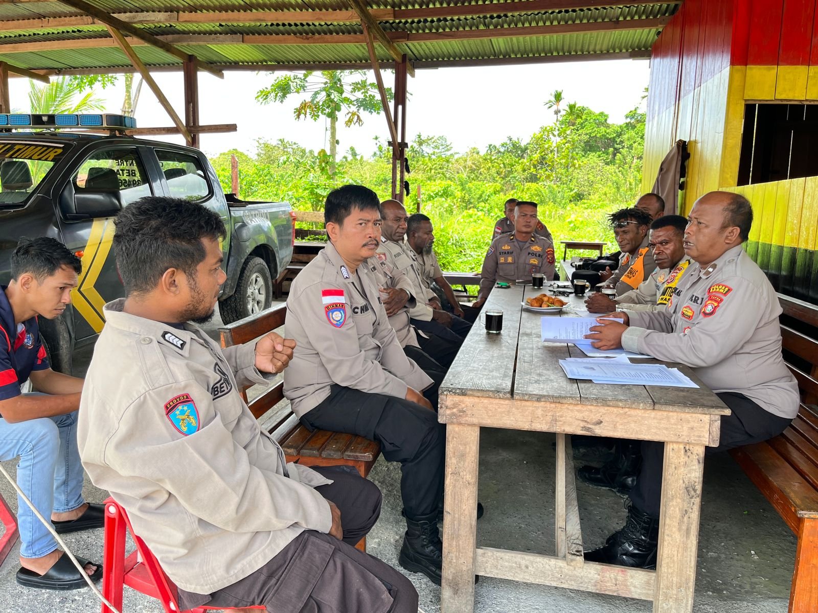 Sarmi – Dalam rangka meningkatkan kinerja Bhbainkamtinmas Polres Sarmi gelar analisis dan evaluasi (anev) untuk meningkatkan kinerja Bhabinkamtinmas agar lebih maksimal dalam melakukan pembuatan laporan bagi personel Polsek pantai Timur yang di pimpin langsung oleh KBO Binmas Polres sarmi Ipda syahrifuudin S.Sos yang bertempat di MaPolsek Pantai Timur Pukul 10:00 WIT,Kamis 09 April 2026.