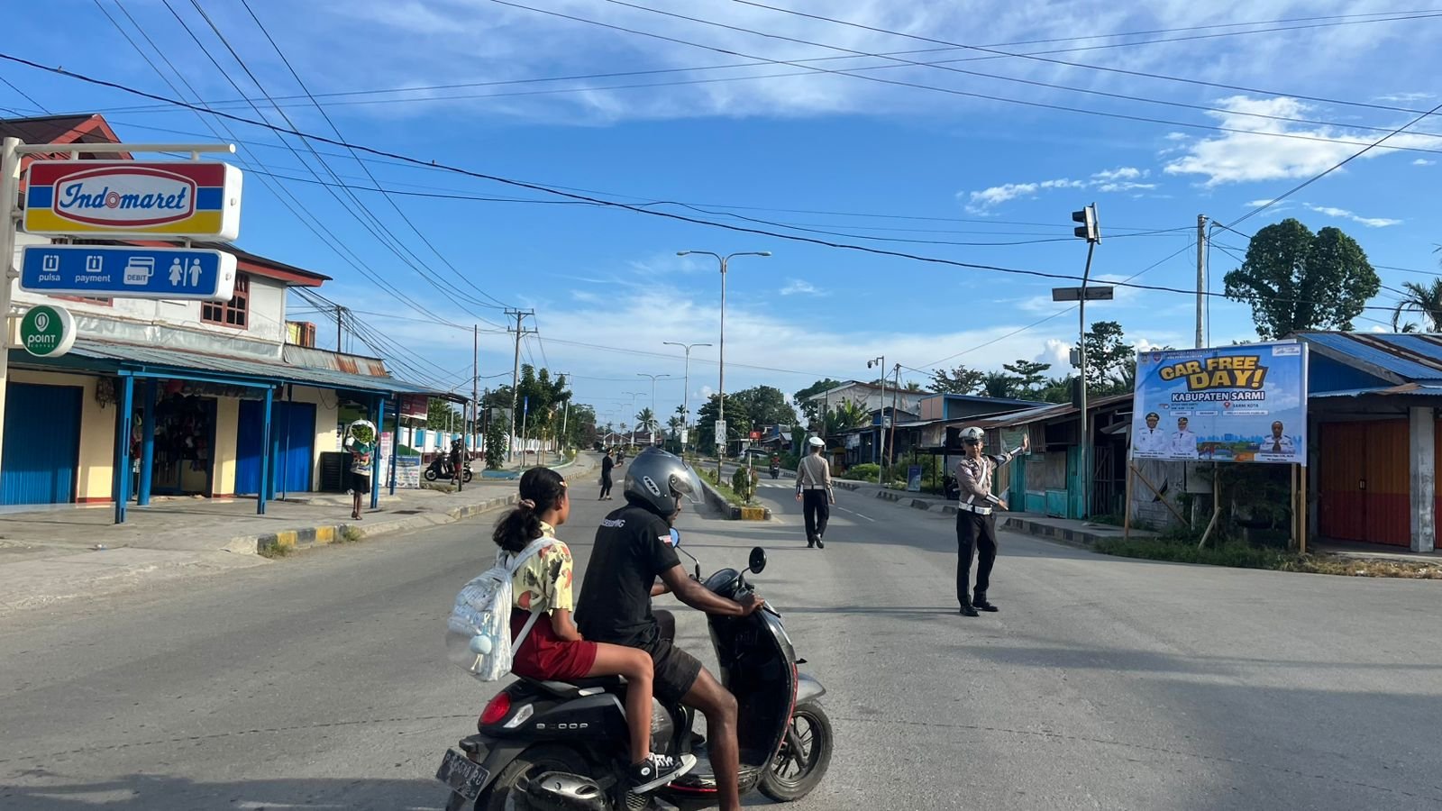 Sarmi – Dalam rangka menjaga kelancaran arus lalu lintas di pagi hari, Satuan Lalu Lintas (Sat Lantas) Polres Sarmi melaksanakan kegiatan strong point pada Kamis (23/4/2026) di wilayah Kota Sarmi.